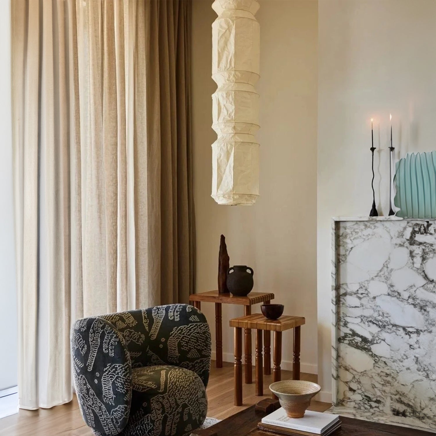 The "Akari Series" is regarded as a classic of modern design, handcrafted by Japanese washi artisans. These paper lanterns skillfully blend traditional Japanese craftsmanship with modernist aesthetics, utilizing handmade washi and bamboo ribbing, complemented by a metal frame to showcase a simple and elegant design.