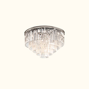 This series of works is inspired by the Art Deco style of 1920s Paris, capturing the era's fascination with geometric forms. Hundreds of dynamic, multifaceted prisms cleverly refract light, evoking the charm of that time. The sharply defined glass hangs like luxurious tassels from a welded iron frame, perfectly blending elegance with an industrial aesthetic.