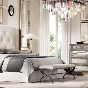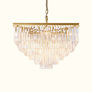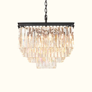 Inspired by the Art Deco style of 1920s Paris, our collection from Timothy Oulton captures the period's fascination with geometric forms. Masterfully refracting the light, hundreds of faceted, dynamic prisms evoke the allure of the era. Hanging like lush fringe from a welded iron frame, the angular glass juxtaposes elegance and industrialism.