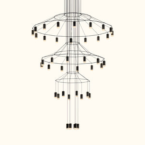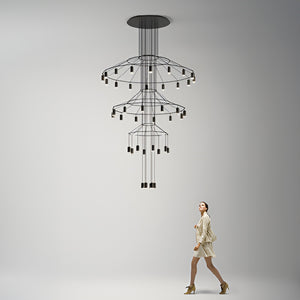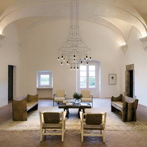 The Wireflow chandelier series features a collection of three-dimensional pendant lamps. By simplifying the traditional chandelier design, this series achieves a refined and distinctive conceptual character, resulting in an ethereal lighting fixture.