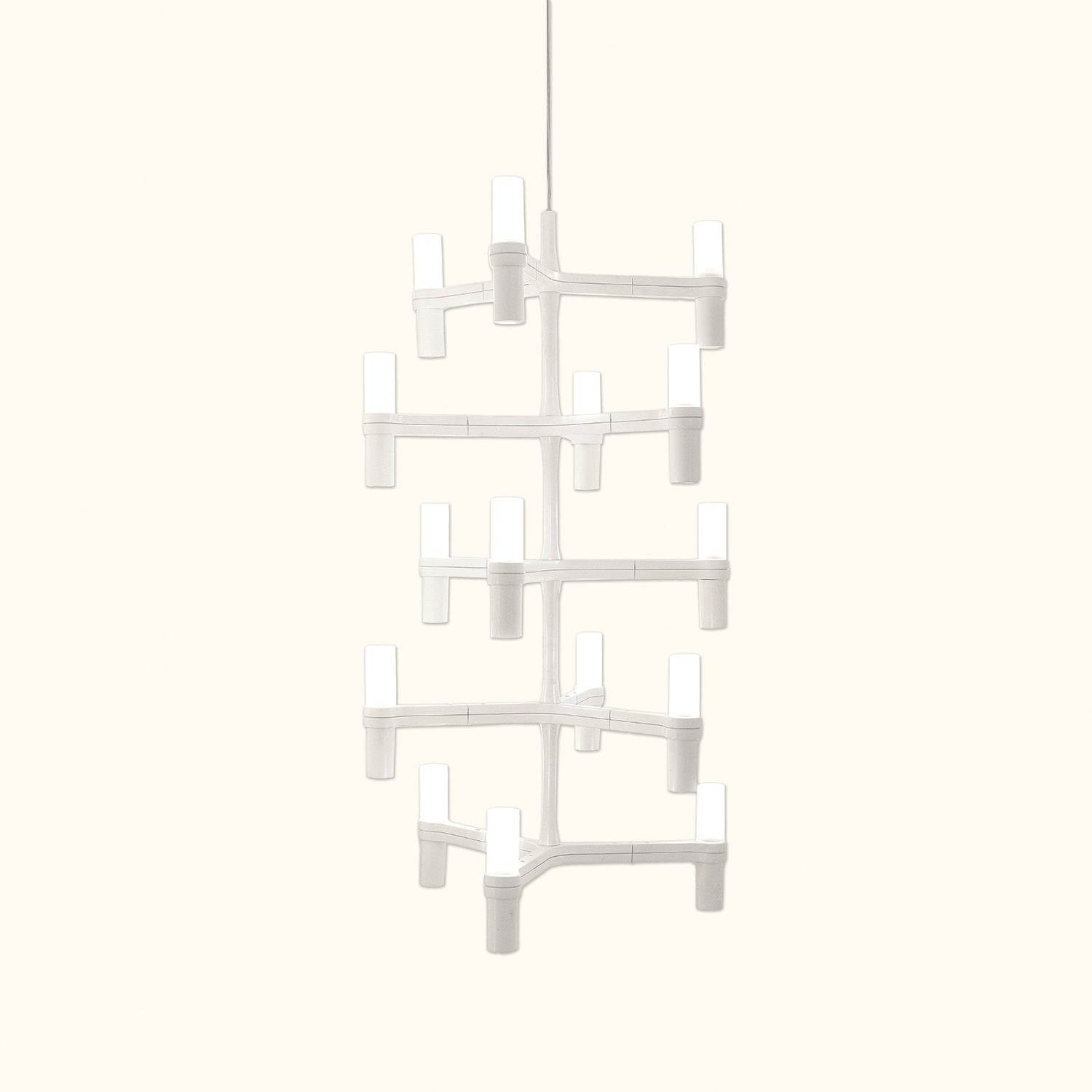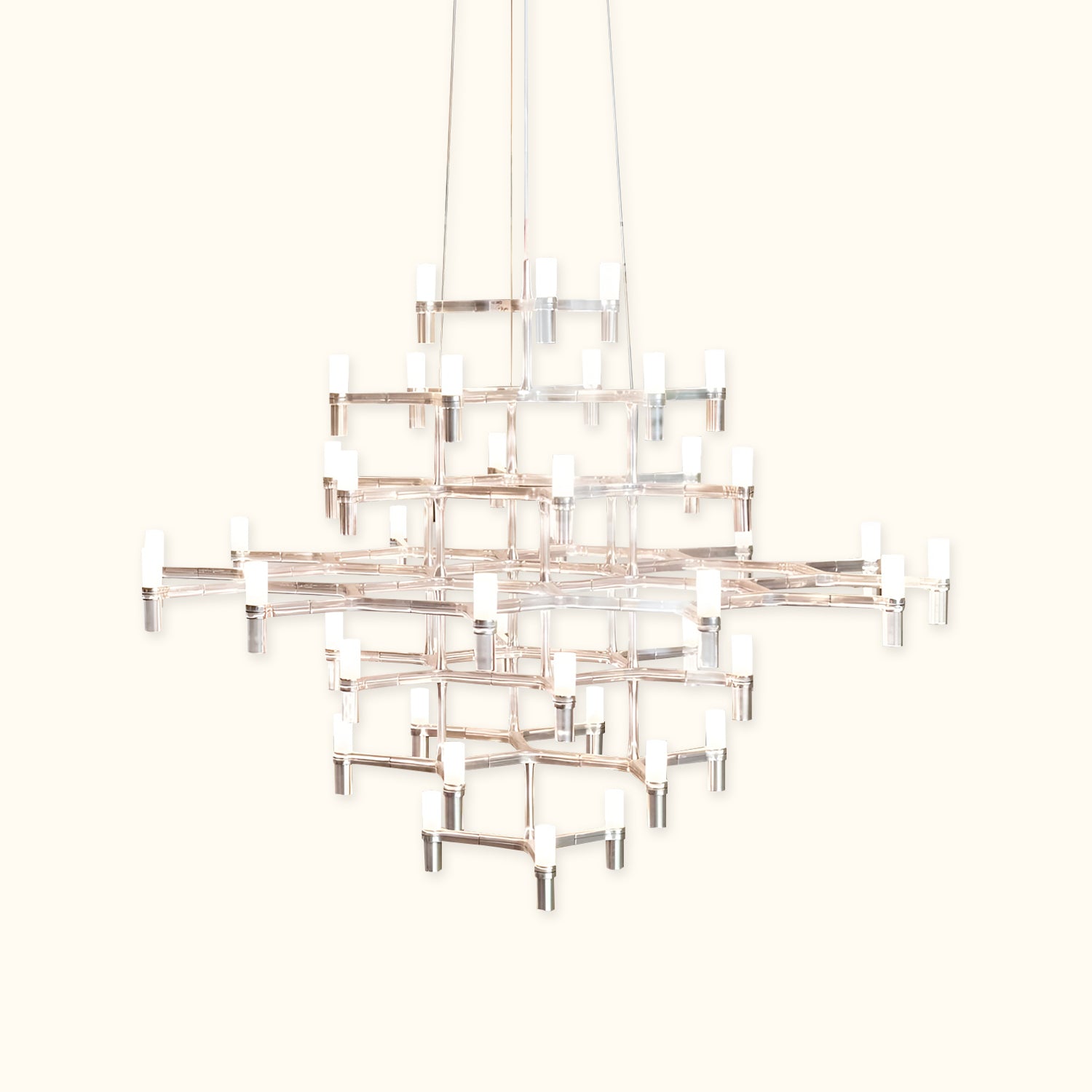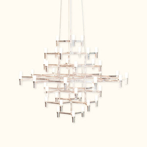 Evoking the iconic design of ancient chandeliers, this contemporary creation draws inspiration from the shape of snowflakes. It features diverse designs with strong visual appeal, and its modular structure allows for countless combinations of colors and sizes.