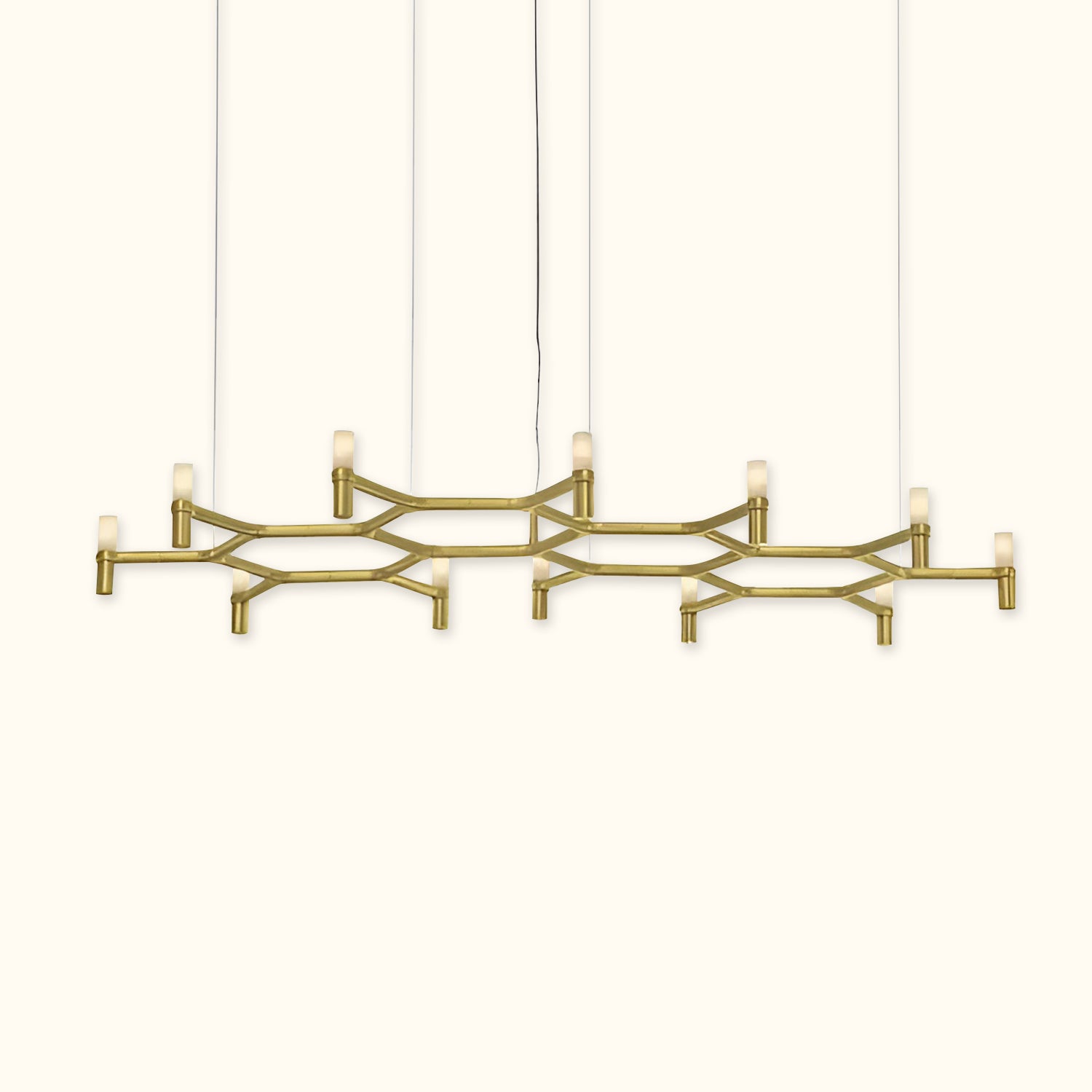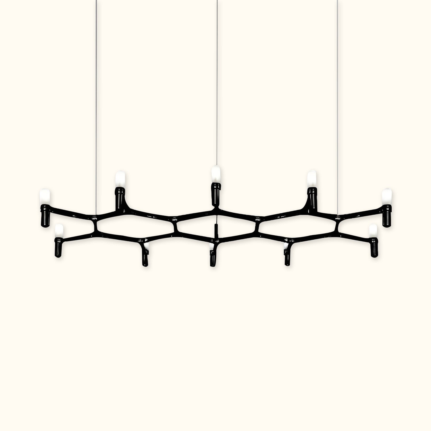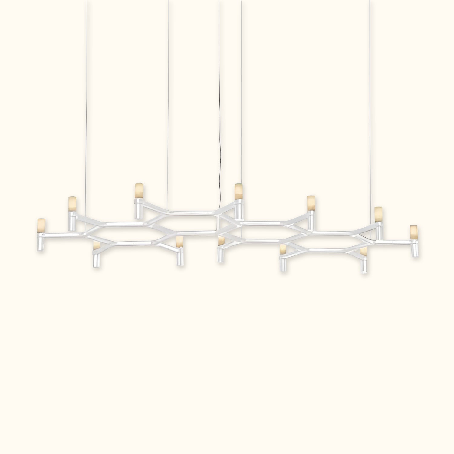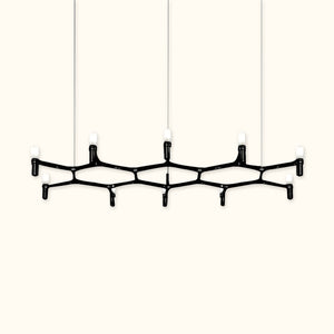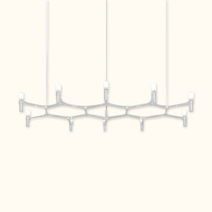 A contemporary design reminiscent of ancient chandeliers, this piece takes inspiration from the shape of snowflakes. It is characterized by versatile designs with striking visual appeal, and its modular structure allows for endless combinations of colors and sizes.
