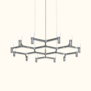 A contemporary design symbol reminiscent of ancient chandeliers, this piece is inspired by the shape of snowflakes. It features diverse designs with strong visual impact, and its modular structure enables limitless combinations of colors and sizes.