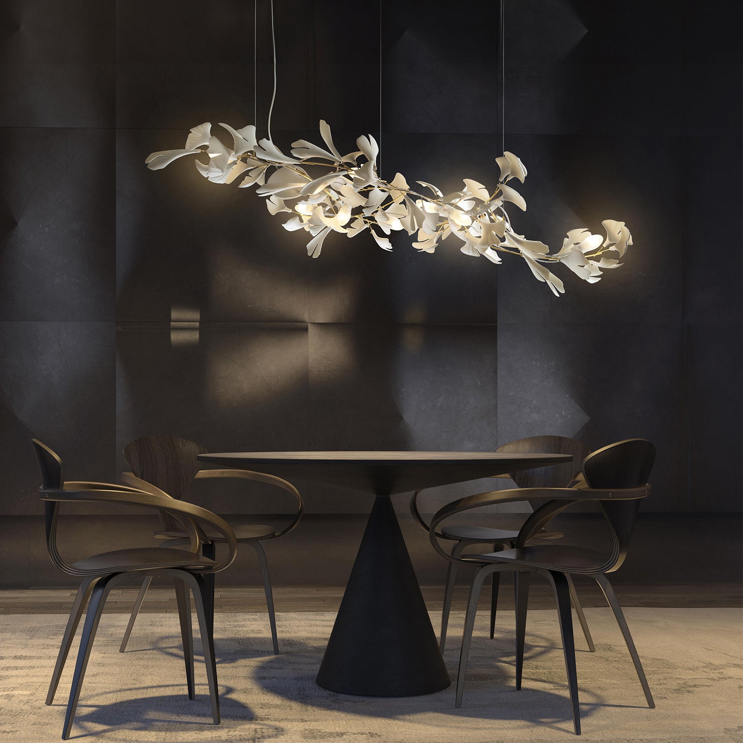 Handmade translucent porcelain leaves, Handcrafted stainless steel frame, borosilicate glass diffusers |