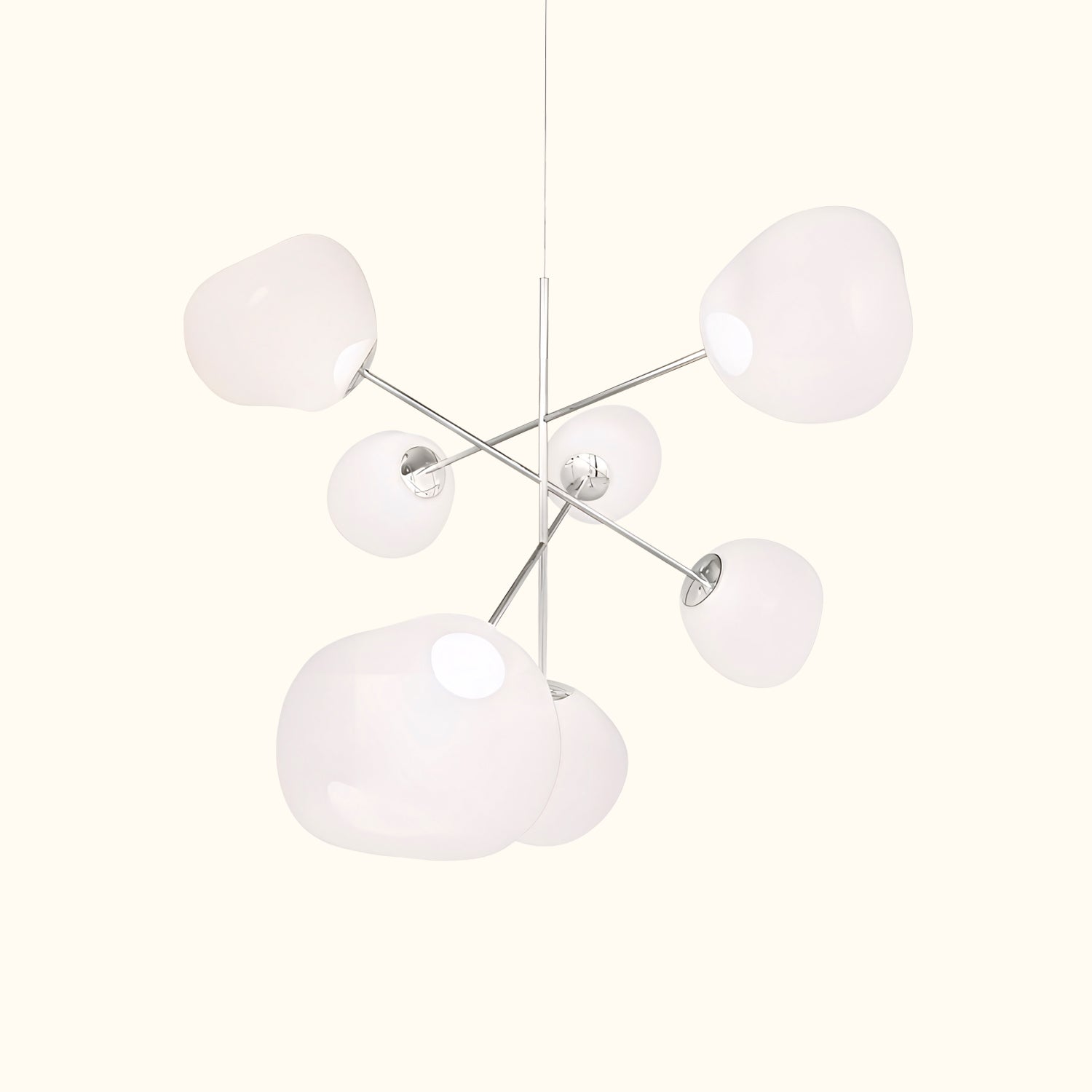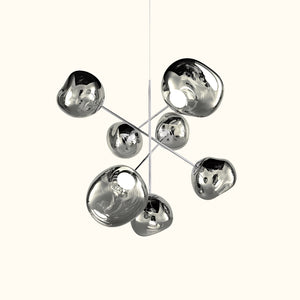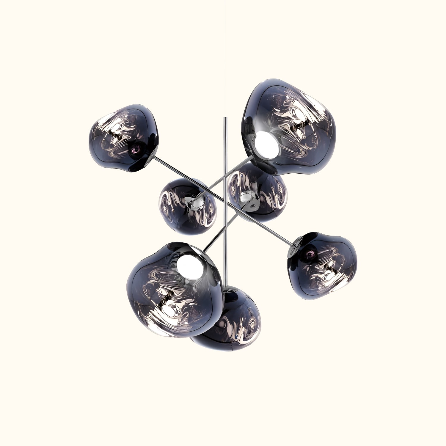 Melt was created in collaboration with a Swedish design group. They are dedicated to creating lighting pieces that are imperfect, organic, and natural. Melt evokes images of molten glass, the interiors of melting glaciers, or the depths of outer space.