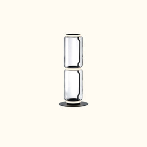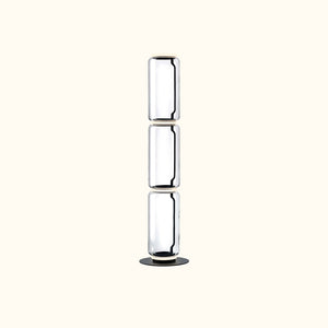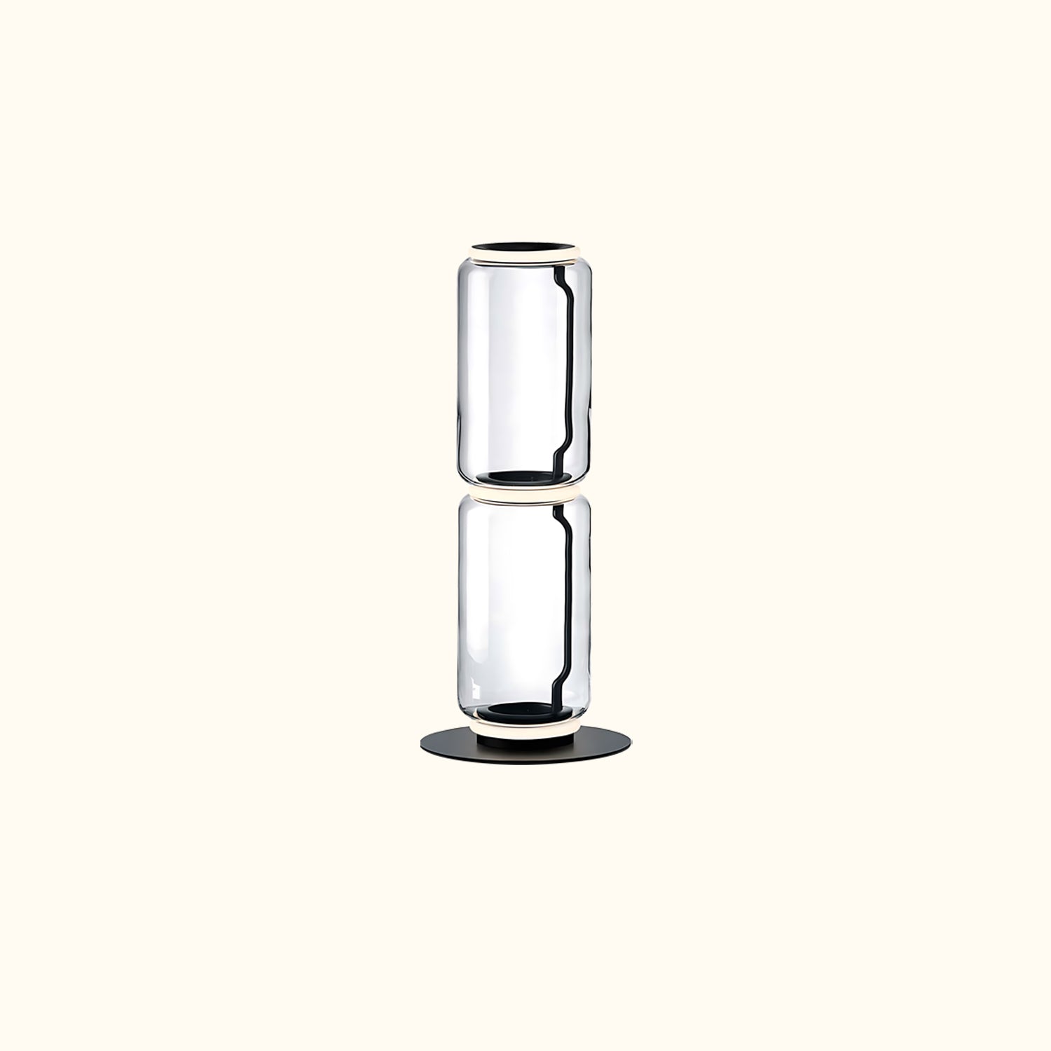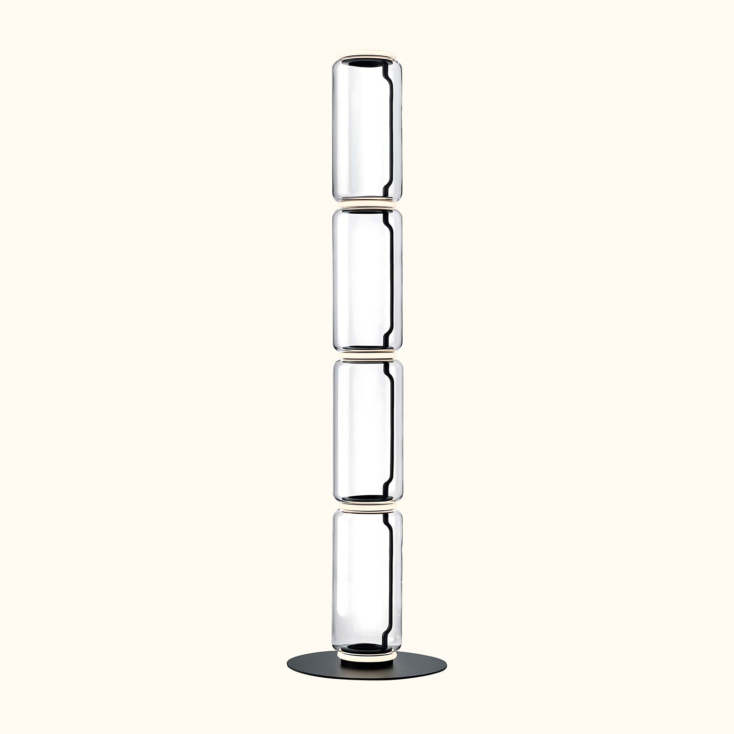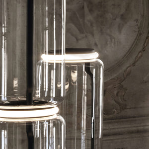 This transparent fixture is made of hand-blown glass cylinders and is almost invisible when not illuminated. Named after the French word for "night owl," it appears dormant due to its concealed LED technology until it magically lights up.