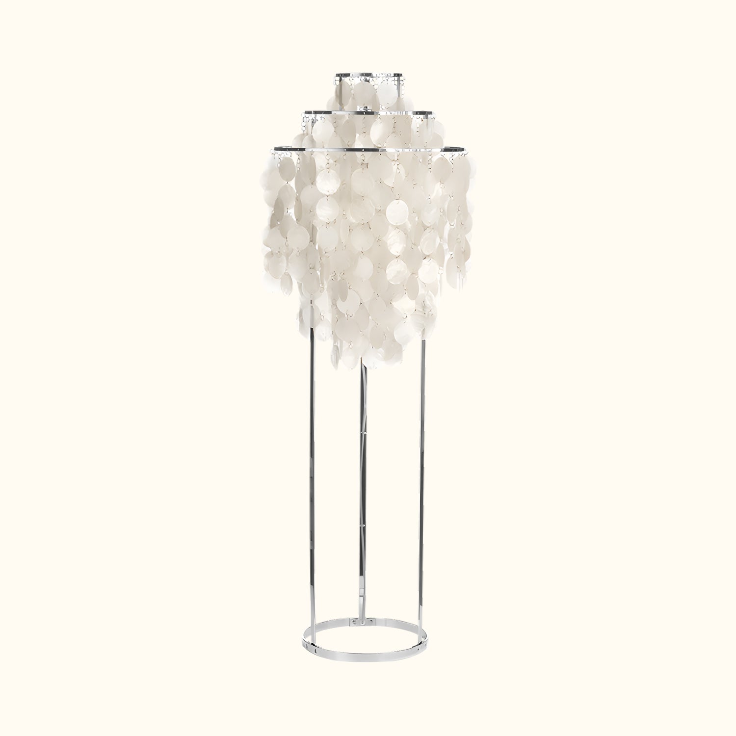 The small table lamp features a two-ring chrome frame.