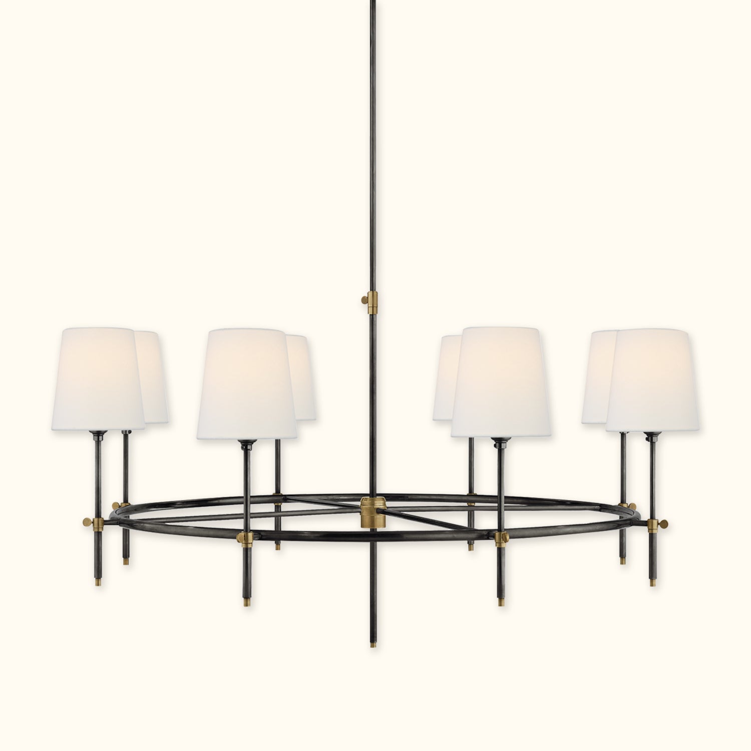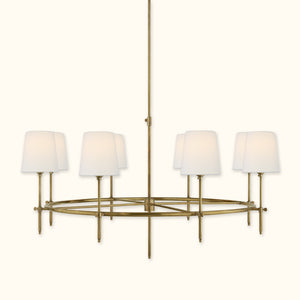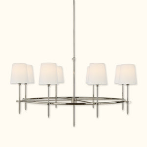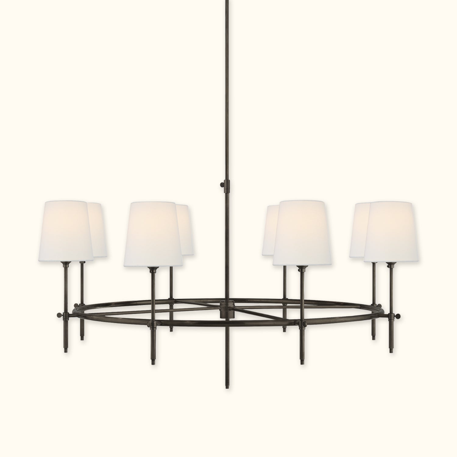Defined by its simplicity, this versatile range of classic lighting includes table lamps, chandeliers, sconces, lanterns, and billiard lights. Combining classic materials like metal finishes with paper, glass, or linen shades and minimal leather accents, the balanced silhouettes bring a refined touch to any room.