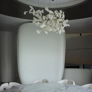 The C / 117 is a stunning installation that brings a sense of natural tranquility and harmony to both public and private spaces. Its shape features a natural and organic flow, reflecting the beautiful irregularities found in nature. The 117 porcelain leaves are individually handcrafted and positioned to optimally capture and reflect light, creating an extraordinary warm ambiance.