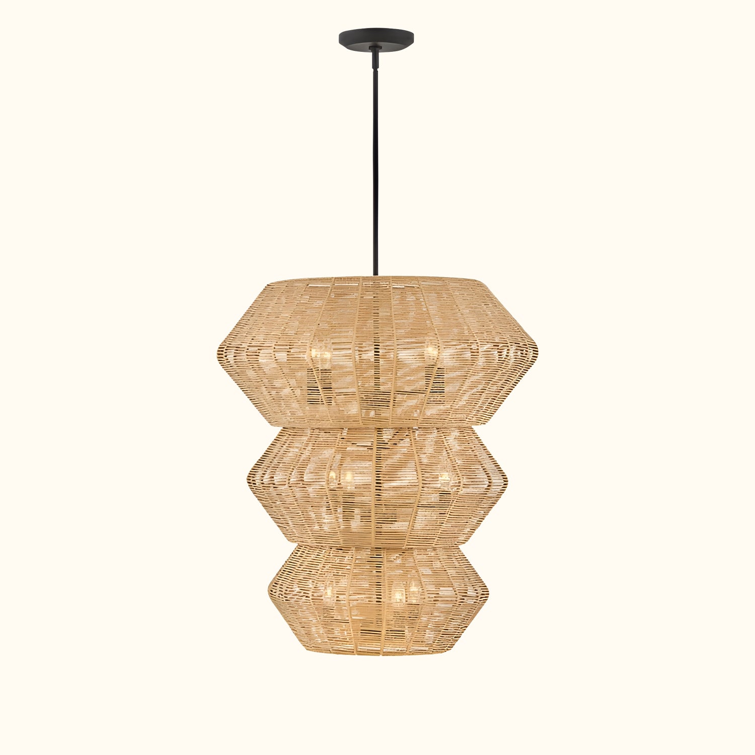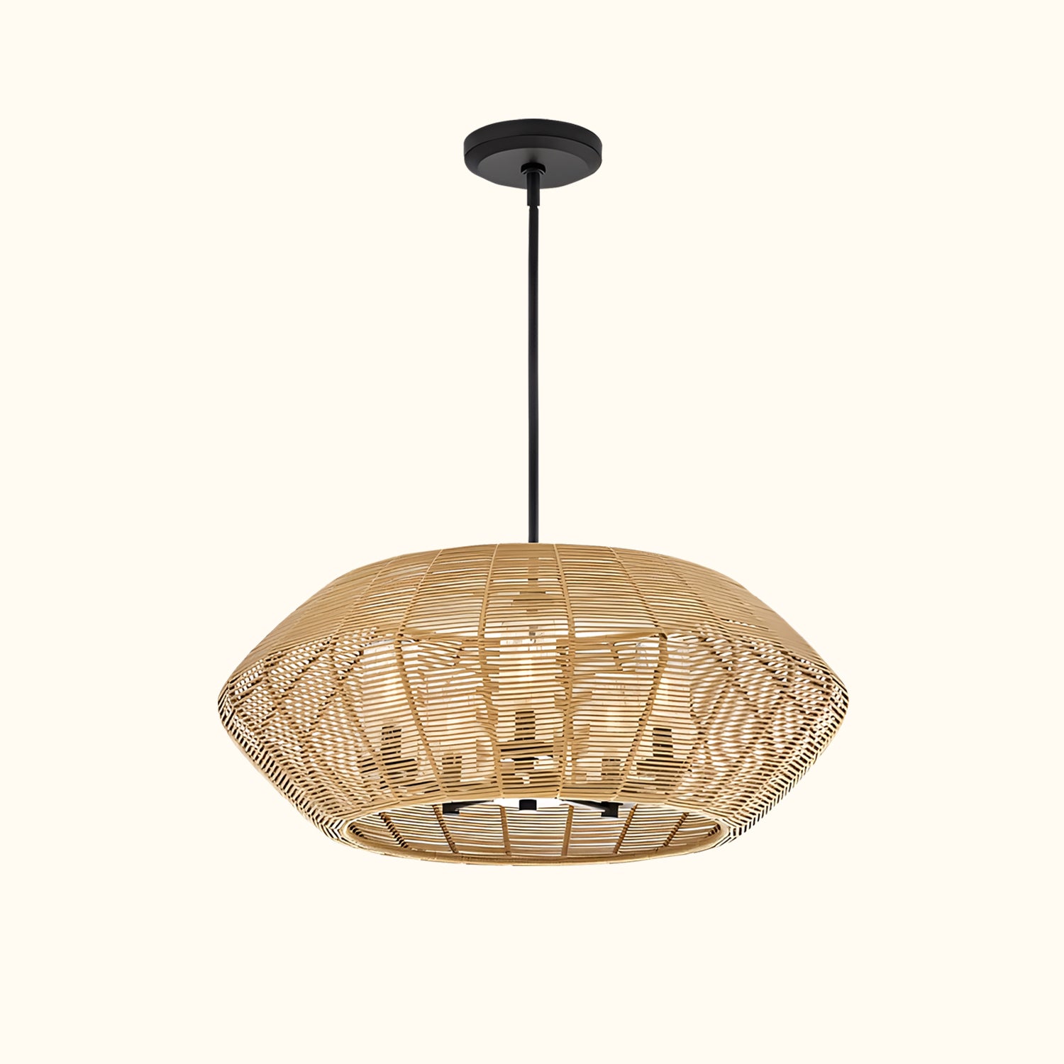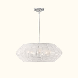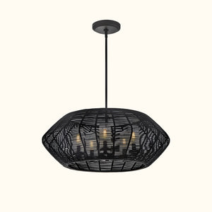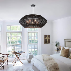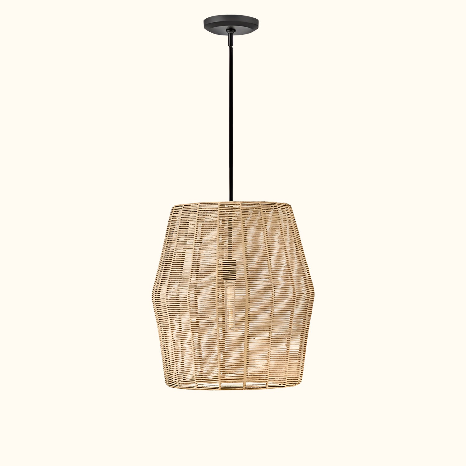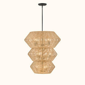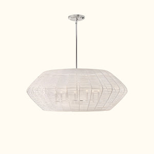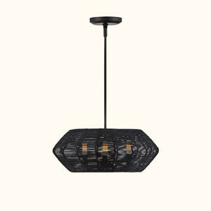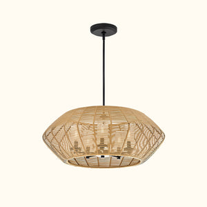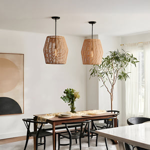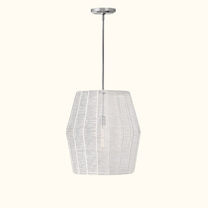 Luca's seaside atmosphere exudes a touch of exotic charm. This bold pendant light features a sturdy woven drum shade and comes with a complete finished light string, providing ample practical lighting and a variety of finish options.