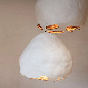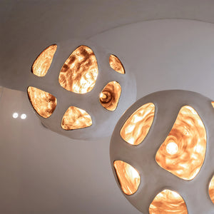 Makivka grows out of the ceiling. The ceramic poppy head emits a silky light through rough, random holes, capturing glances. It is the blossom of the Ukrainian soul.