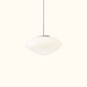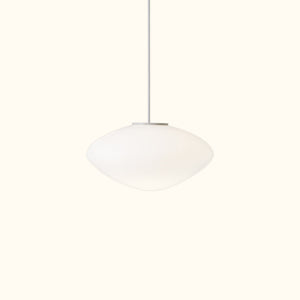 The inspiration for the Mist comes from the warm, diffused light of the morning sun passing through thin fog, adding a modern touch to the classic spherical lamp silhouette. This pendant is made of hand-blown opal glass, adorned with white-coated aluminum details and fabric cords, giving the appearance