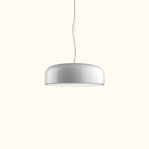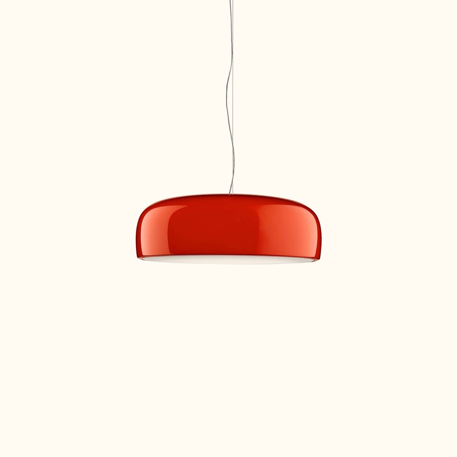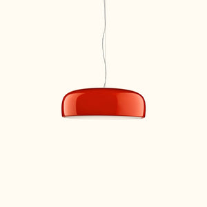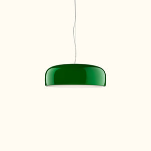 Pendant light with direct lighting. Aluminum body. Available in glossy black, matte black, red, green, white, or MUD.