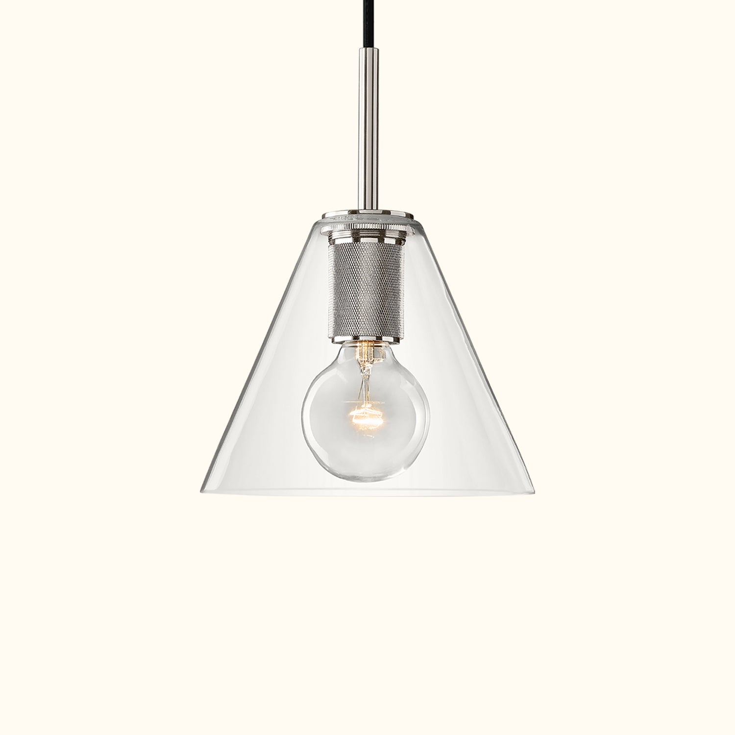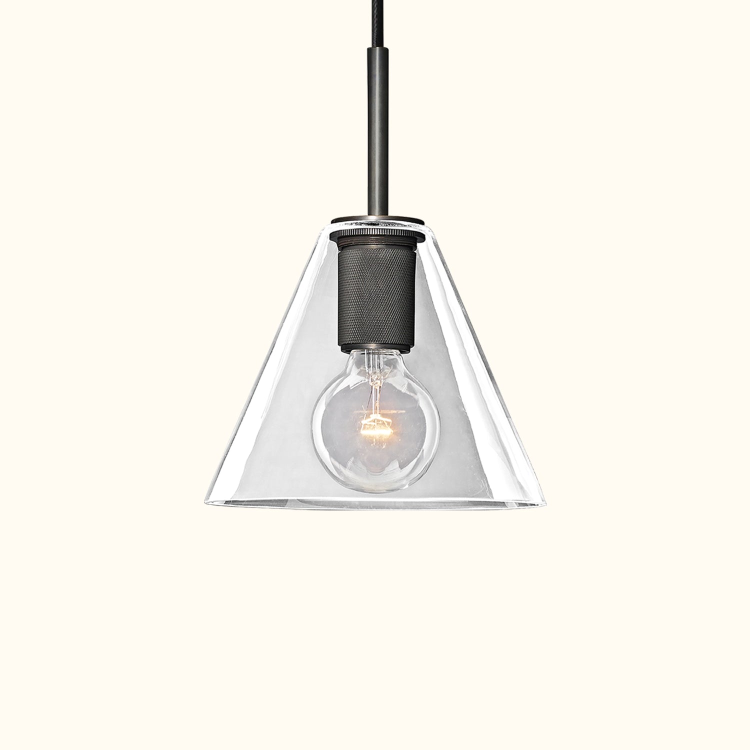 The series is an upgraded version of the bare bulb, combining polished surfaces with simplicity to embody the principles of industrial minimalism. The finely crafted diamond knurled texture on the base, the striking filament bulb, and the simple transparent glass lampshade together create a subtle, understated accent.