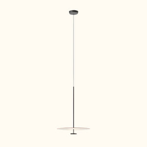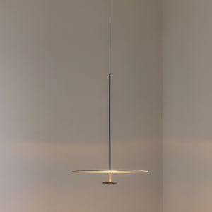 The Flat 5940 lamps are a creation by the designer. These disc-shaped lights descend from the ceiling to form a hanging lamp, where the planes of reflected light blend seamlessly with the architecture. All models in the Flat collection are equipped with LED lighting and are available in a range of neutral color tones.