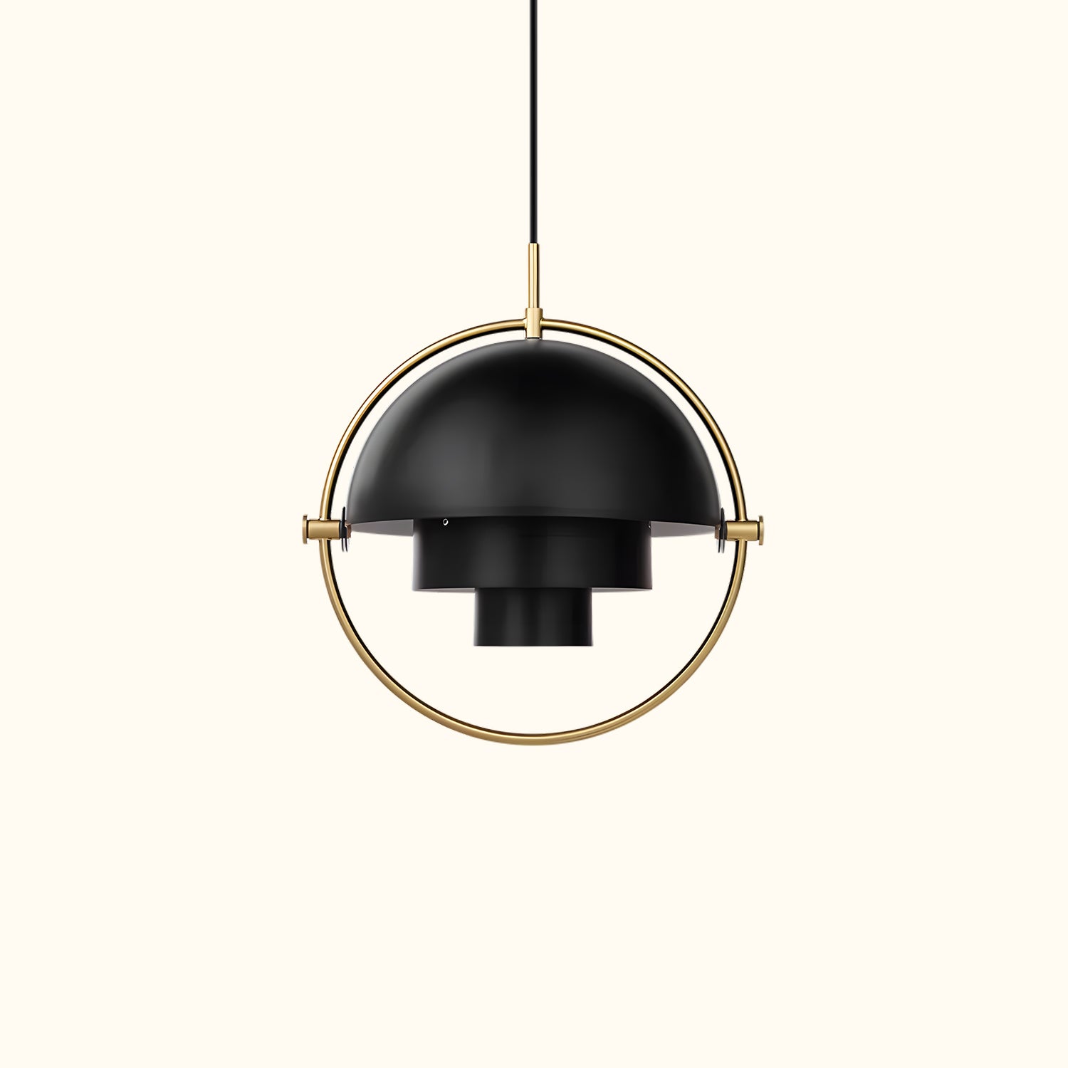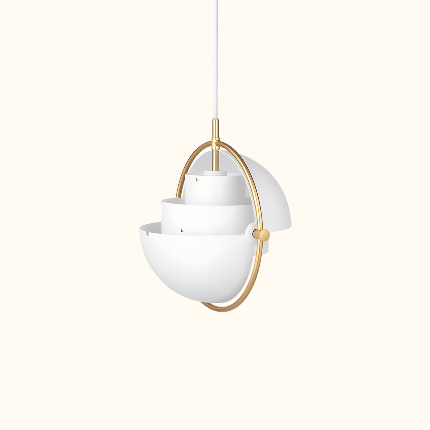 The Multi-Lite Pendant embraces the golden era of Danish design with its iconic shape featuring two opposing, movable outer shades that allow for personalized installations and offer a variety of lighting effects in a room. By individually rotating the shades, the Multi-Lite Pendant can be transformed into multiple combinations, directing light upwards, downwards, or emitting an asymmetrical artistic glow. The Multi-Lite was first sketched in 1972 when Louis Weisdorf broke away from his usual design practice of using repetitive elements, instead reflecting his passion for diversity. Two cylindrical shapes form the foundation of the lamp, while a metal ring encircles and anchors the two quarter-spherical shades, completing this iconic design with versatile functionality. The Multi-Lite Pendant has a timeless expression that fits into any home setting.