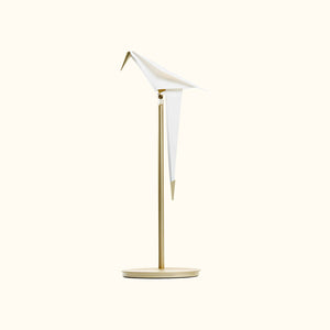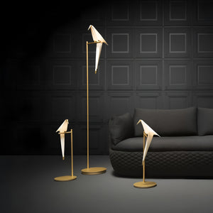 The table lamp in this collection is the smallest piece, yet it holds its own unique charm. You can sit comfortably beside it, admire its delicate details, and watch the gentle swaying of its bird-like silhouette nearby. Best of all, a simple touch is all it takes to activate the lamp, allowing you to bask in its warm, sunlight-like glow.
