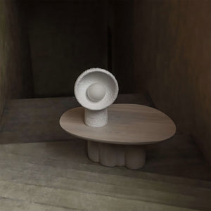 Each SONIAH table lamp is handcrafted using sustainable materials. The sculptural SONIAH lamp originates from the ground, as if driven by the power of the earth.
