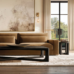 A master glass designer has created a dramatic evocation of rain in this inspired collection. Suspended from a slim frame, a single drop of blown glass encases the bulb, casting a luminous glow.