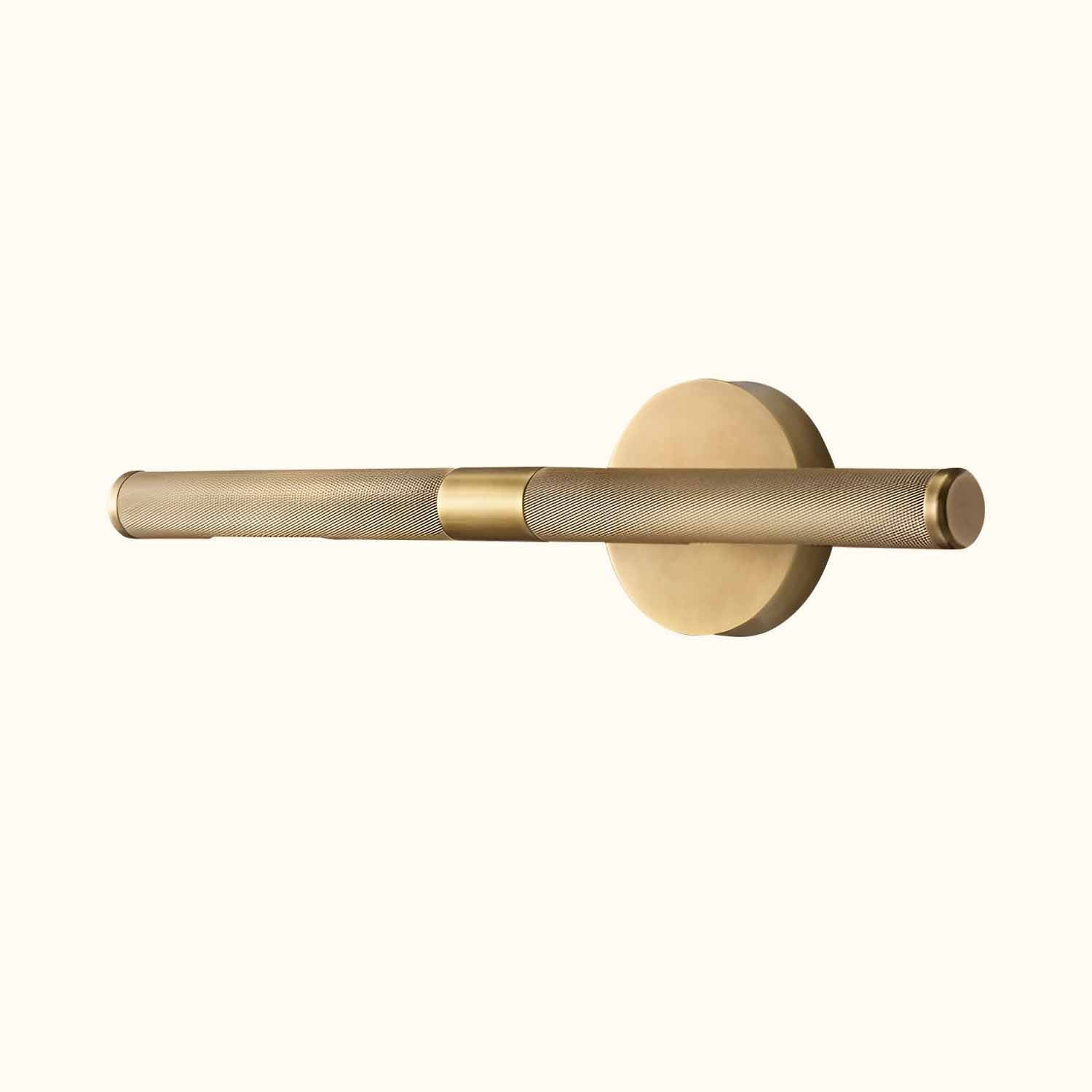 Inspired by classic museum fixtures, this design reimagines the utilitarian picture light. Crafted from solid brass, the fixture combines strength with elegant proportions. The knurled texture not only meets the functional need for grip and rotation but also adds an industrial edge.
