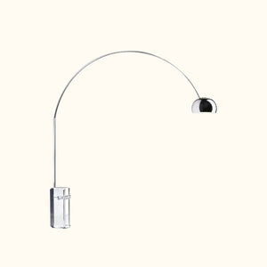 Arco K 2022 Limited Edition is a numbered special edition release. The Arco K 2022 Limited Edition highlights the structure of the lamp itself, guiding the gaze along the important arc to the innovative crystal base. This floor lamp provides direct light. It features a lead-free glass base, a satin-finish stainless steel telescopic stem, and a pressed, polished, and zapon-varnished aluminum swiveling and height-adjustable reflector.