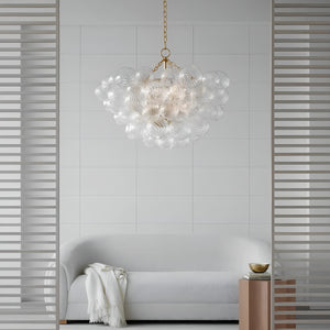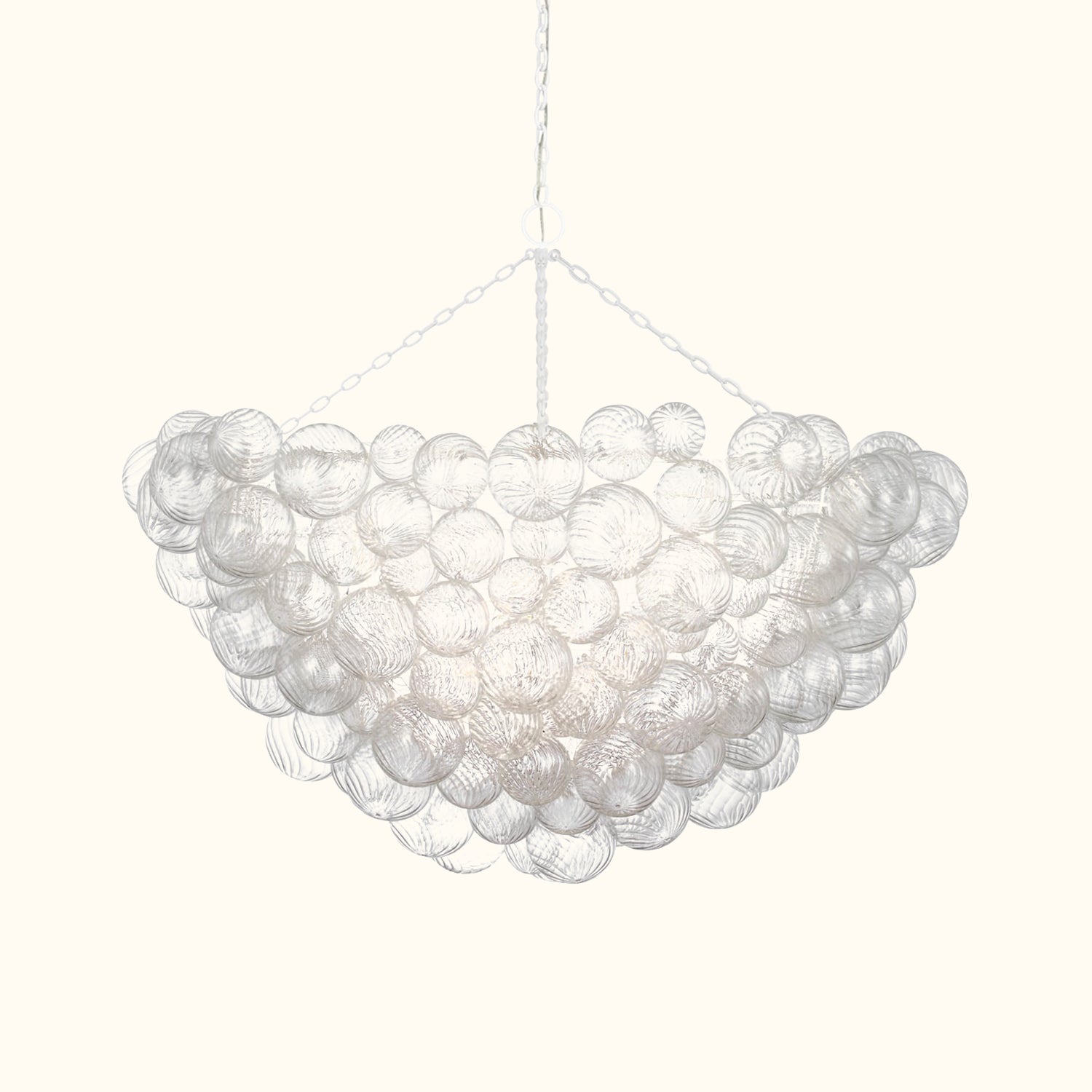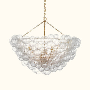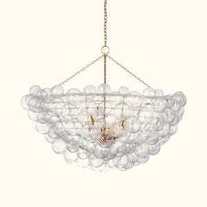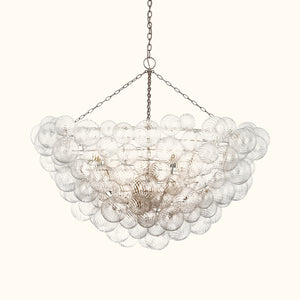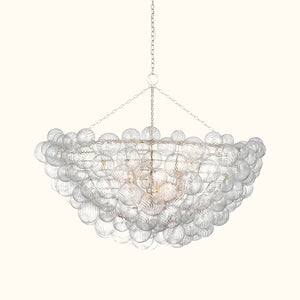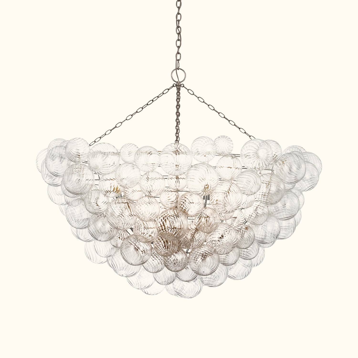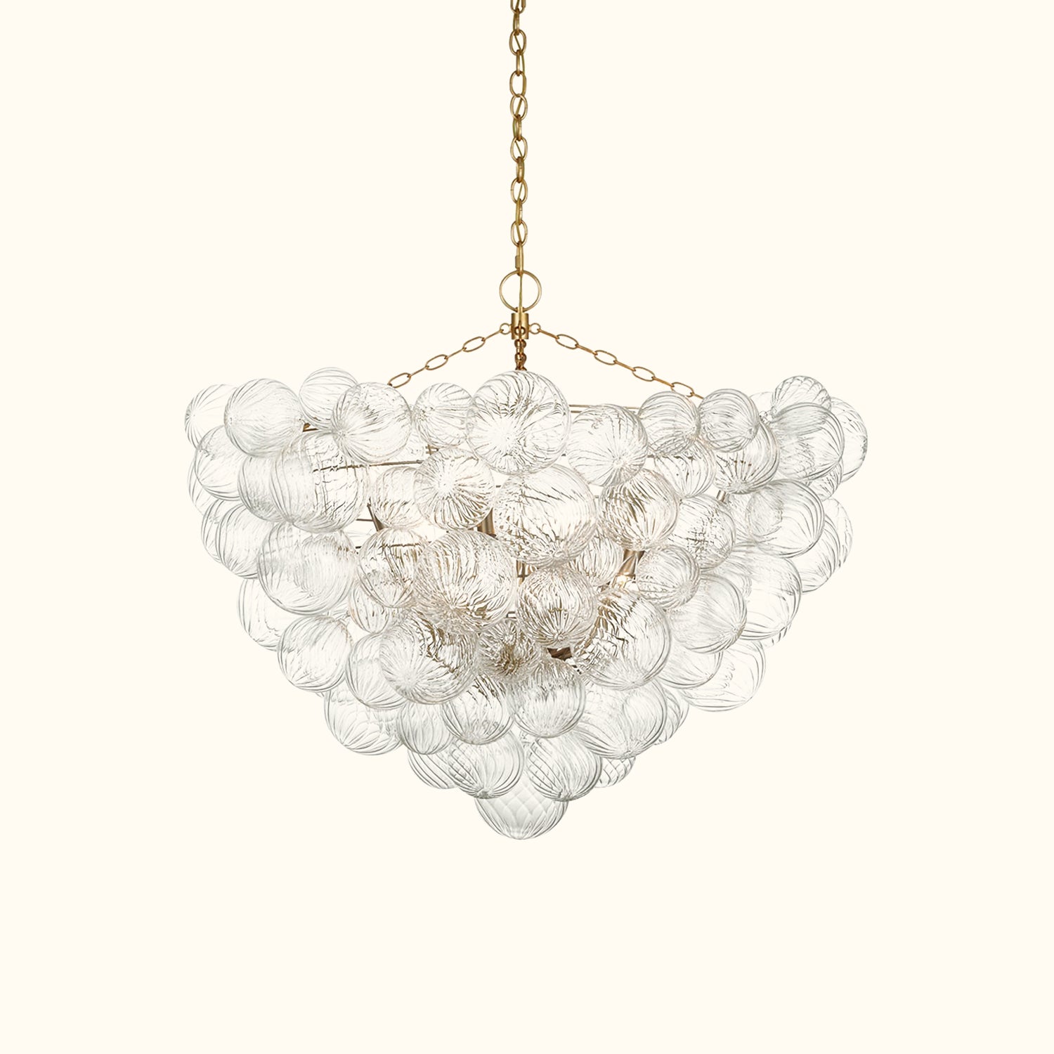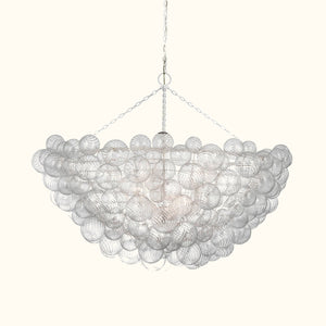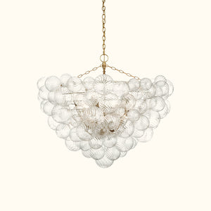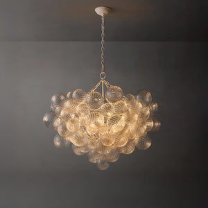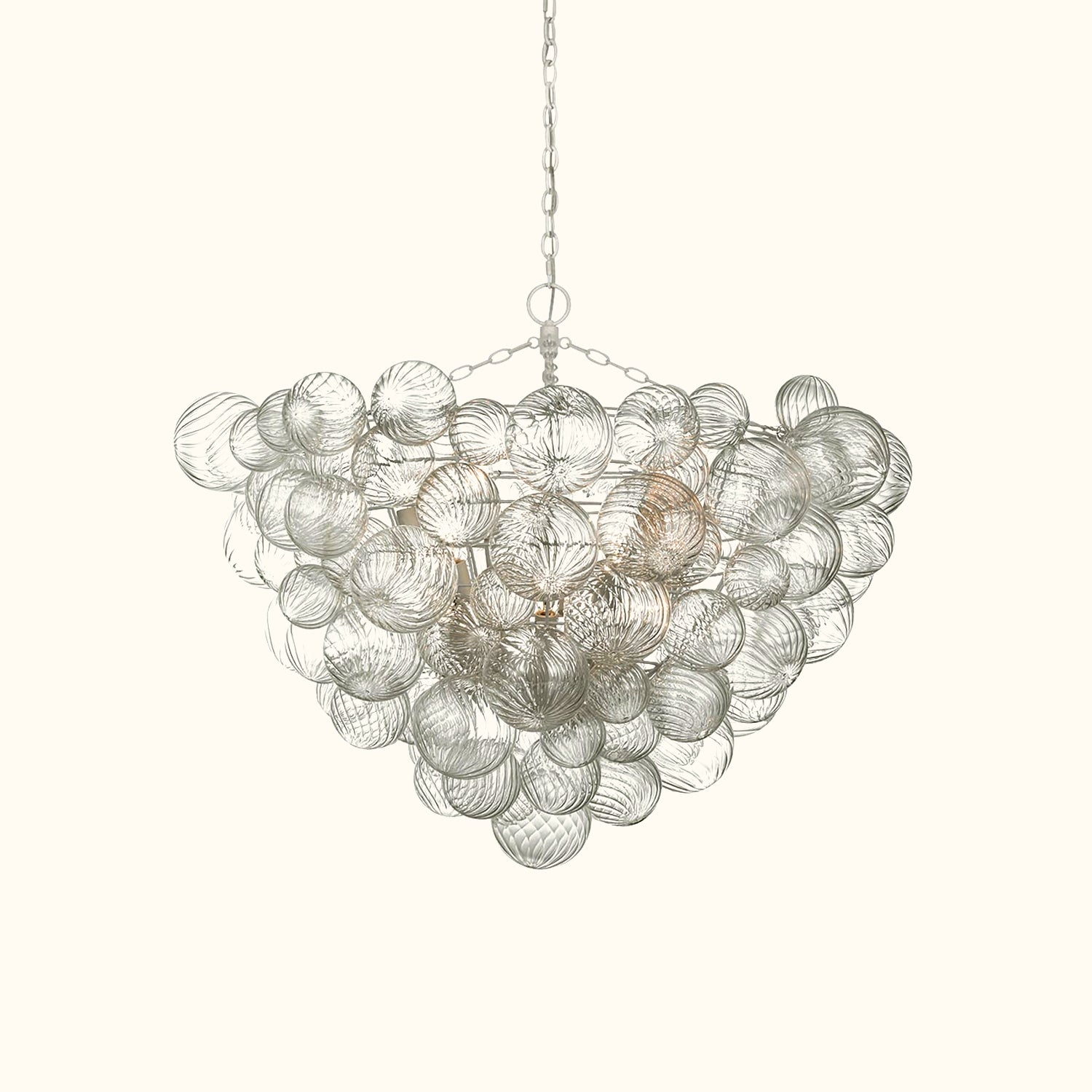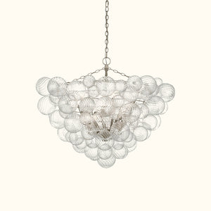 The Talia Chandelier is where artistry meets illumination. Swirled glass orbs capture and scatter light like ripples across water, while a copper frame finished in silver, gold, or white lacquer anchors the design with timeless grace. More than a source of light, it is a sculptural presence—an elegant harmony of nature, craft, and radiance, designed to transform any space into a work of art.